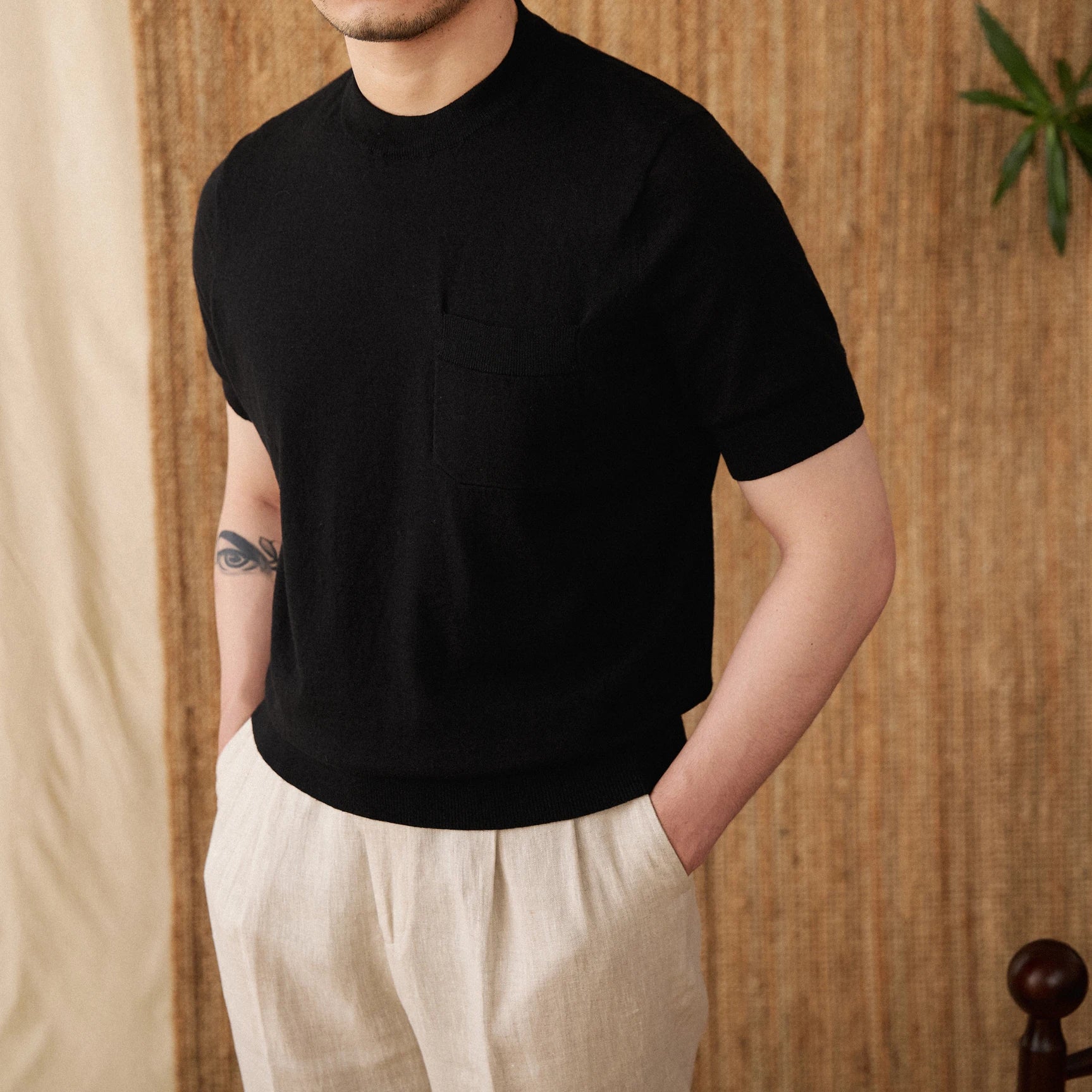- 💼 Uno stile old money: questa T-shirt in lino nero riflette uno stile distinto e raffinato, specifico della moda old money.